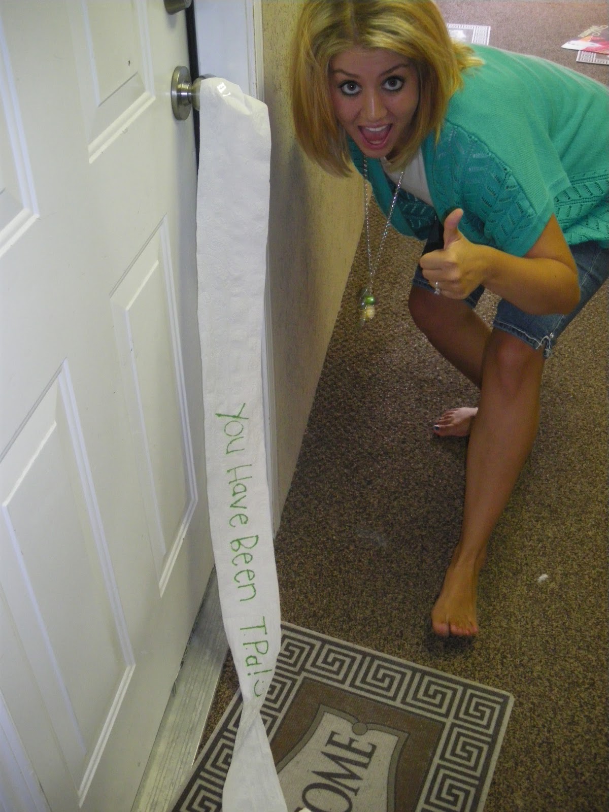 We got a roll of toilet paper and taped it to our friend's door who lives a couple doors down from us. That's the only way you can toilet paper an apartment.